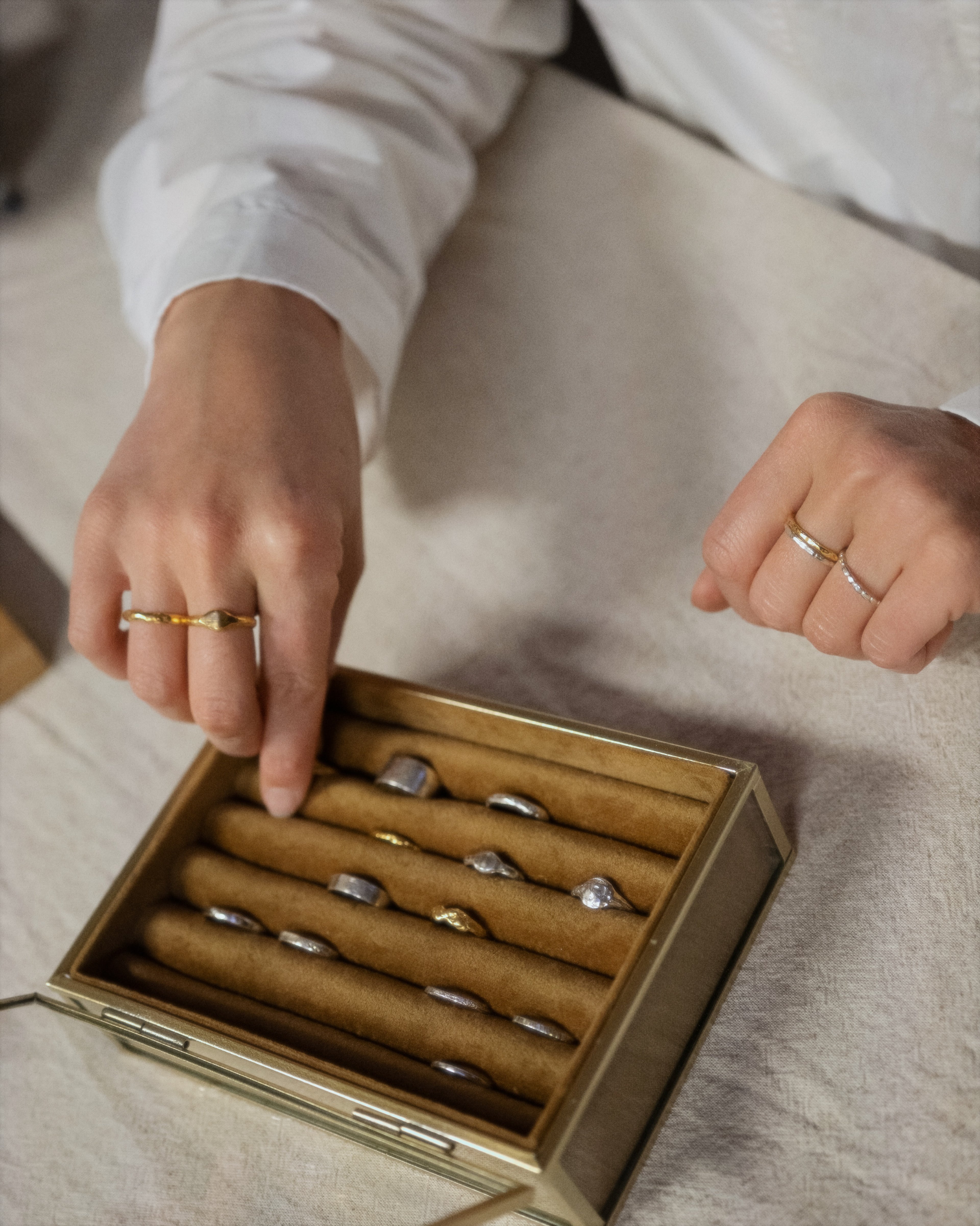 Every custom piece begins with a conversation. I guide you through each decision with care — from the material and color to the shape, comfort, gemstones, and the subtle symbolism that makes the piece truly yours.